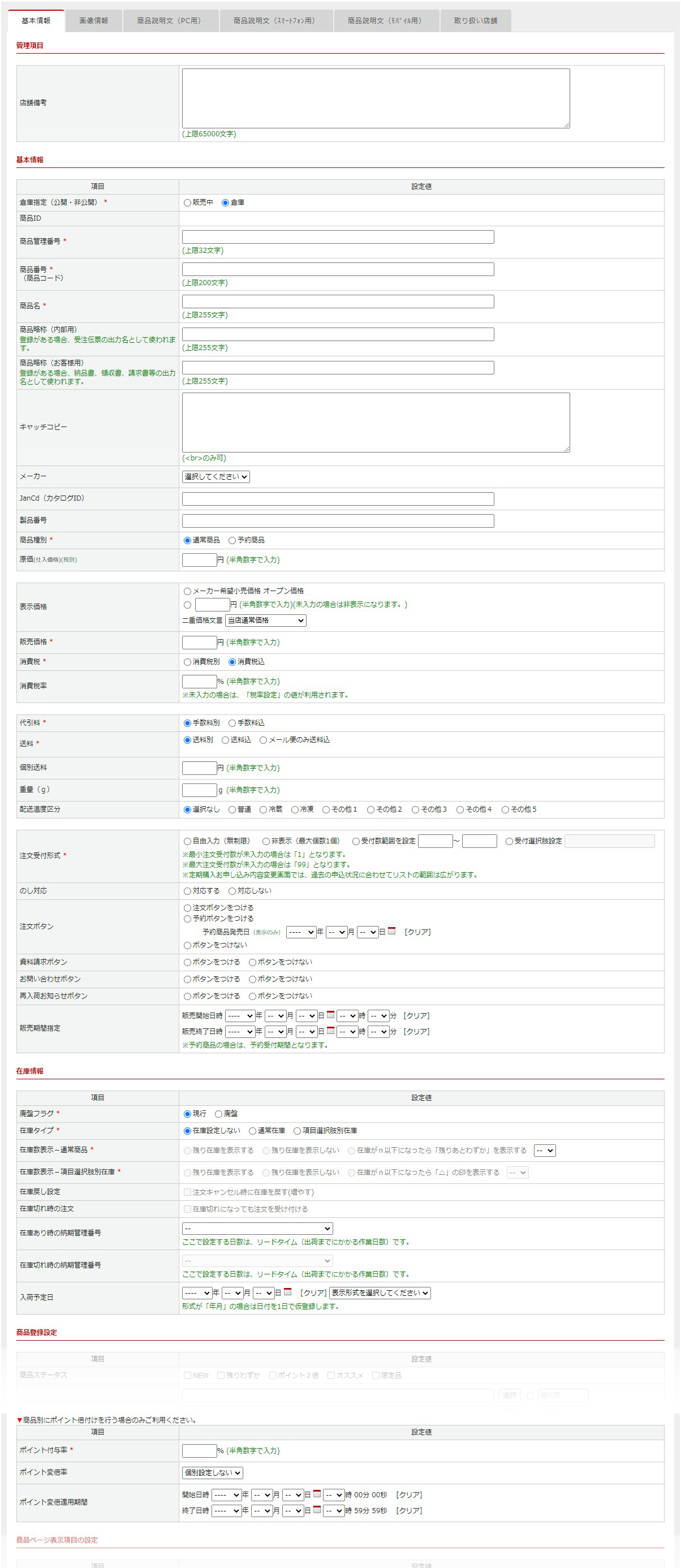 販売価格/消費税/代引料/送料/注文受付形式/廃盤フラグ/在庫タイプ/ポイント付与率