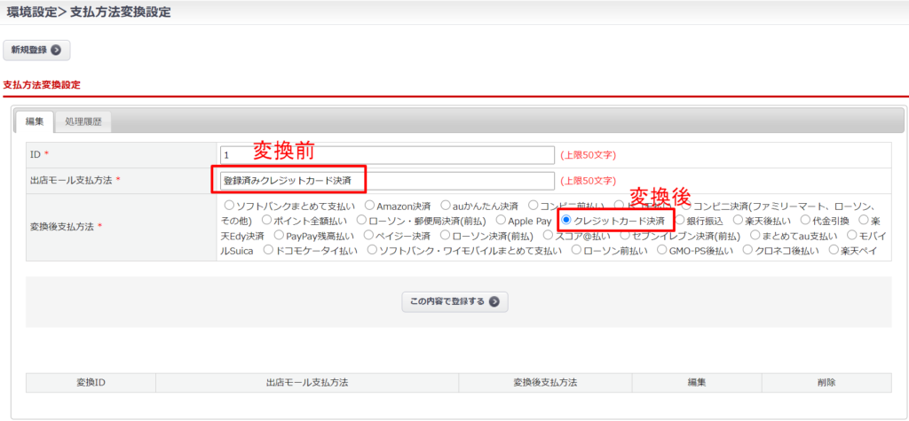 変換後:全て「クレジットカード決済」表記に変換・統一されます。