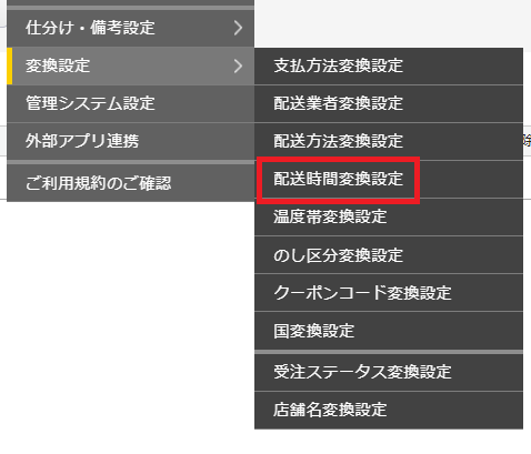 配送時間変換設定により、出店モールから取り込んだ受注データのお届け希望時間帯が