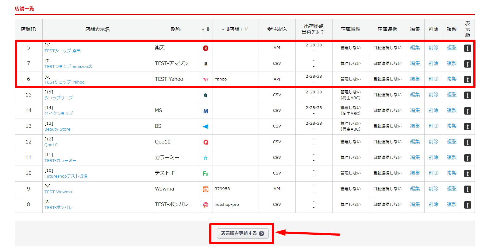 スマレジEC・一元管理内での店舗の表示順を変更することができます。