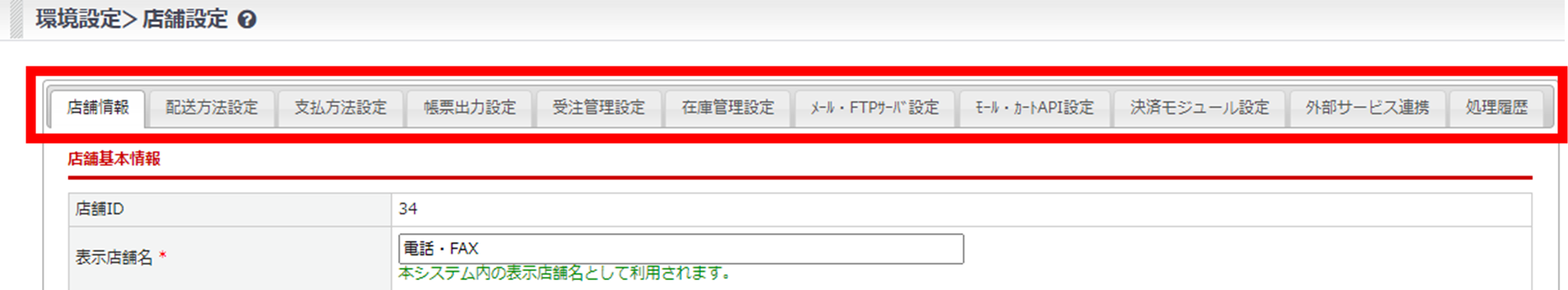 | 店舗情報 | 店舗ID、本システム内での店舗の表示名、会社名、住所、 店舗用メールアドレスといった基本的な情報を設定します。 |
