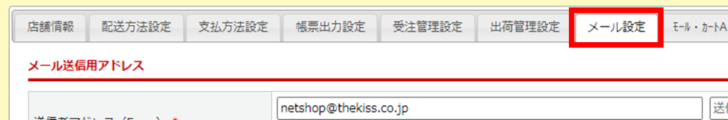 環境設定>店舗設定>「メール・FTPサーバ設定」タブ