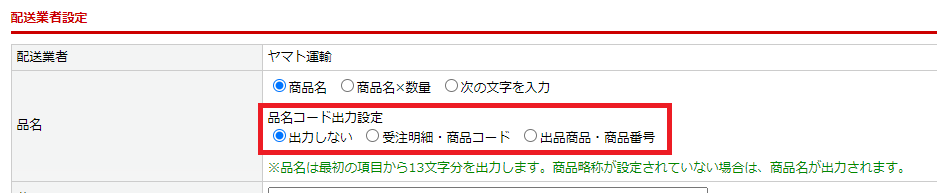 | 記事欄に出力 | 送り状記事欄に受注IDを出力したい場合、「受注ID」を選択する |