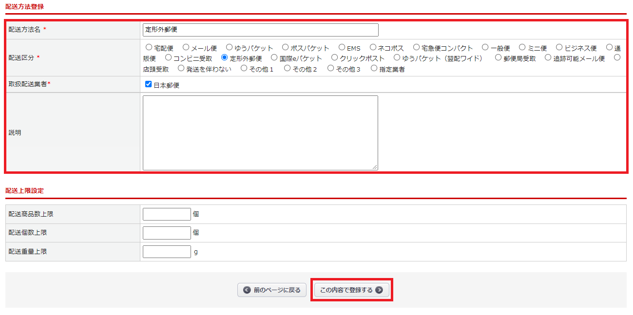 配送方法登録