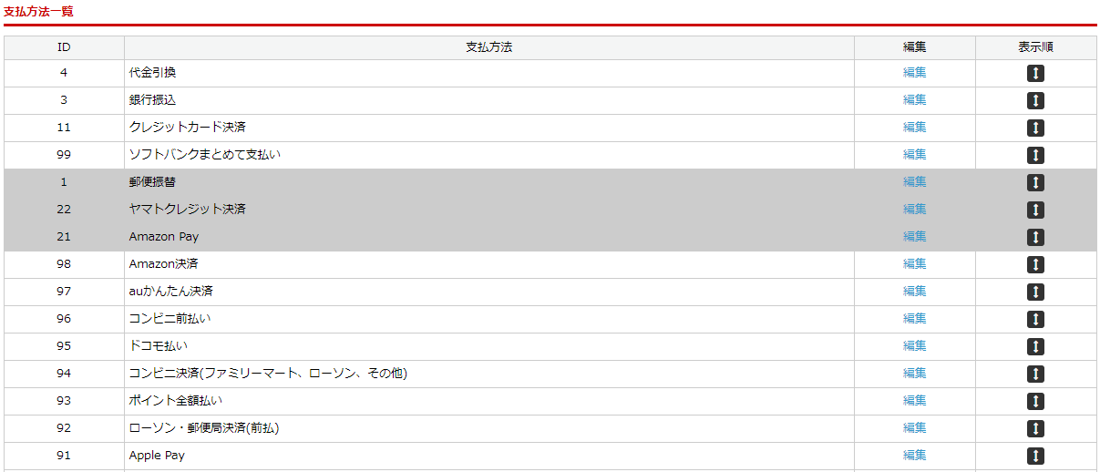| 支払方法ID | 支払方法を登録した際に割り振られるIDが表示されます。 ※店舗様にて既存の支払方法の数字を変更しないでください。 |