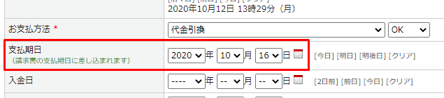 | 支払方法* | 支払い方法の名称を入力してください。 設定した名称が受注の支払方法として表示されます。 |