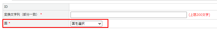 | 国コード* | 国コードを任意で設定できます。 ※初期設定で登録されています。 |