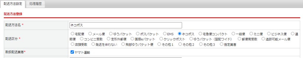 配送方法登録:「配送区分」が [ネコポス] の場合