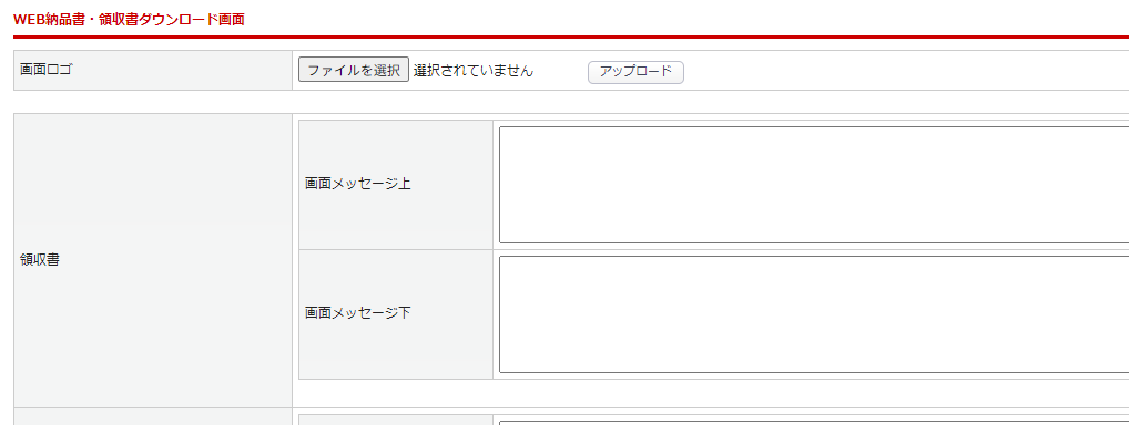 下部の入力項目から、WEB納品書・領収書ダウンロード画面に表示するロゴ・メッセージの設定が可能です。