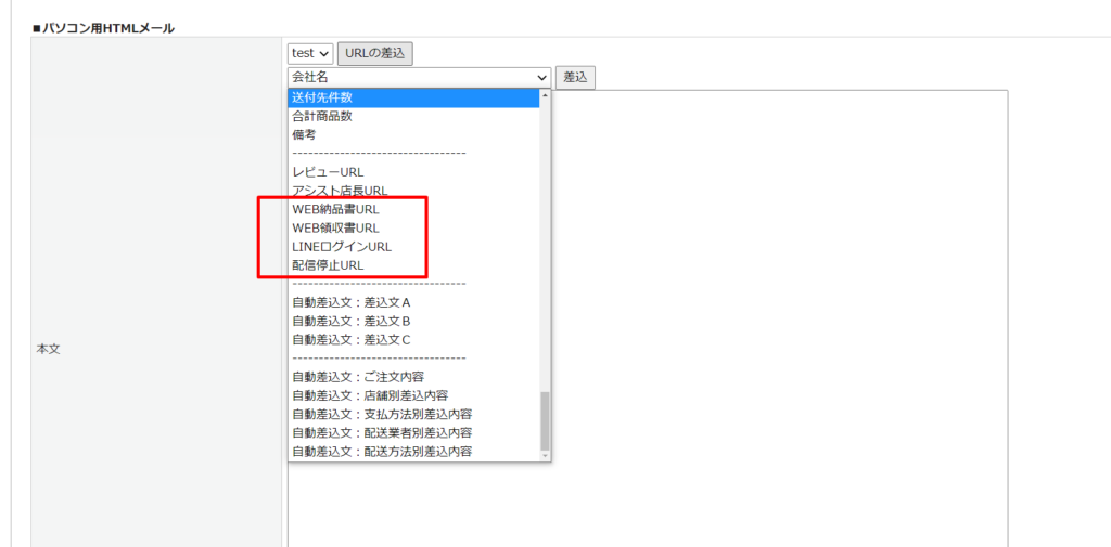 「ダウンロード」はメール送信時の差込タグでのみ利用可能です。