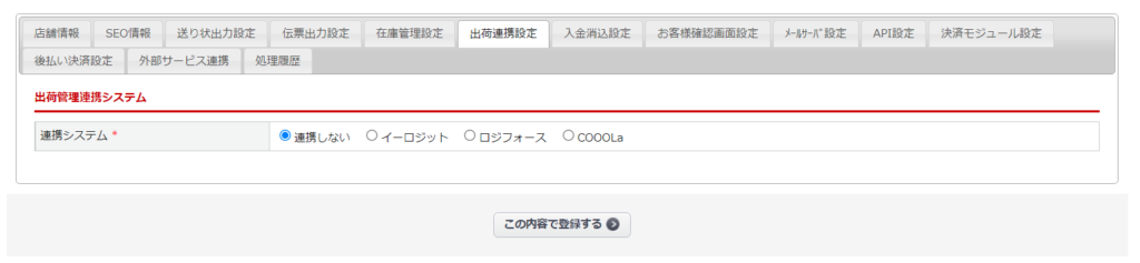 ※以下の出荷管理システムとの連携機能をご利用の際にこちらの設定画面が表示されます。
