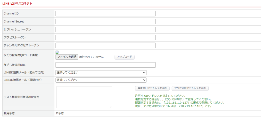 LINE Developersより取得した接続情報や、友だち登録用QRコード画像・URL、