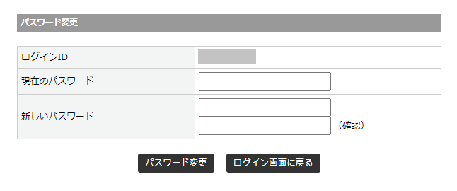 現在のパスワードと新しいパスワード(確認のため2回)を打ち込み、【パスワード変更】ボタンをクリックすることにより管理画面にログイン中のユーザのパスワードの変更が可能です。