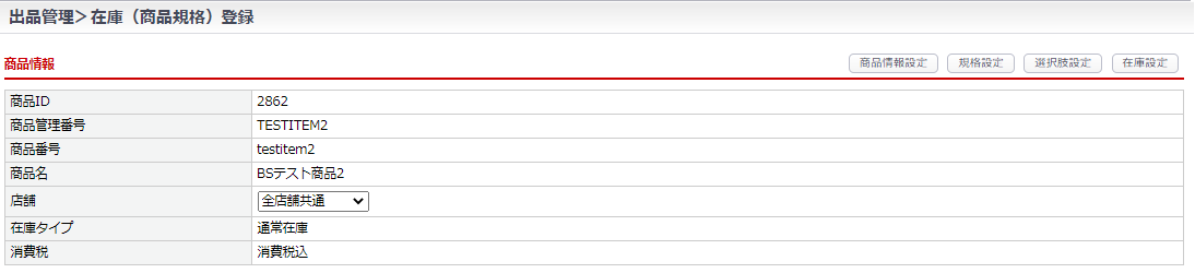 在庫情報にて「通常在庫」または「項目選択肢別在庫」を選択した場合の設定です。