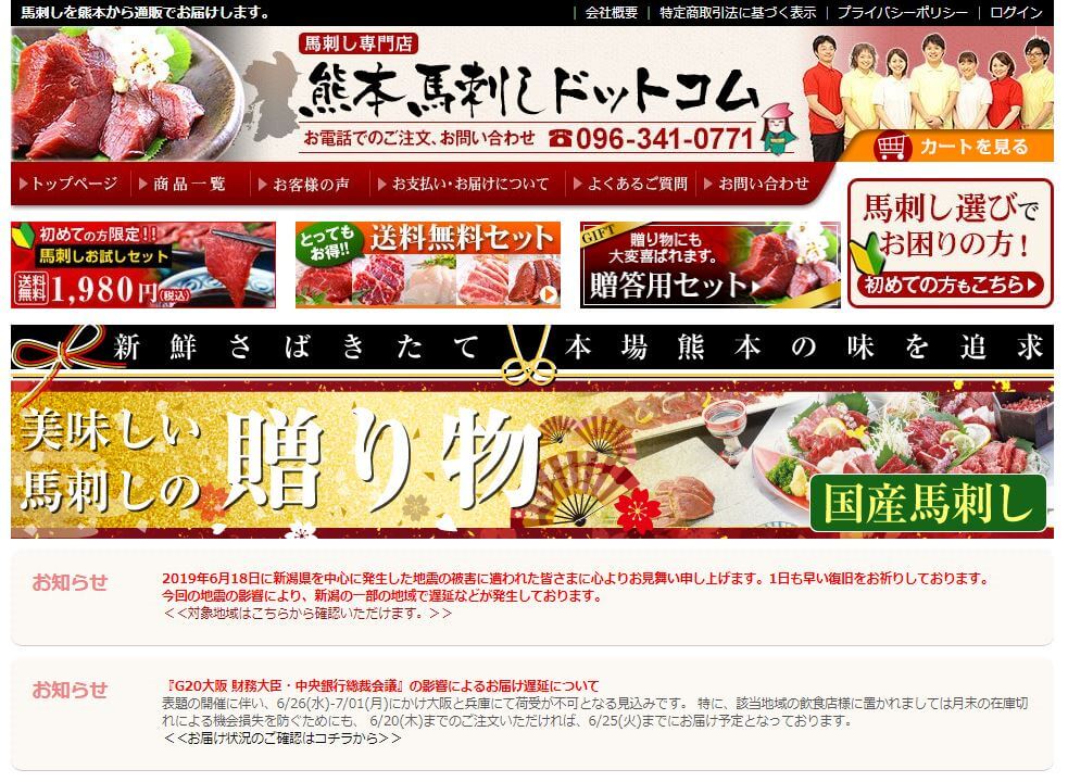熊本では数少ない、WEBマーケティングに強い会社。 食品を中心に熊本の食文化「馬刺し」をインターネット通販での販売や、お土産店で販売しています。 毎年、前年比150%成長しているベンチャー企業で、新規事業への投資をしながらビジネスを急成長させています。 楽天市場の総合リアルタイムランキングで2位(2014年7月)