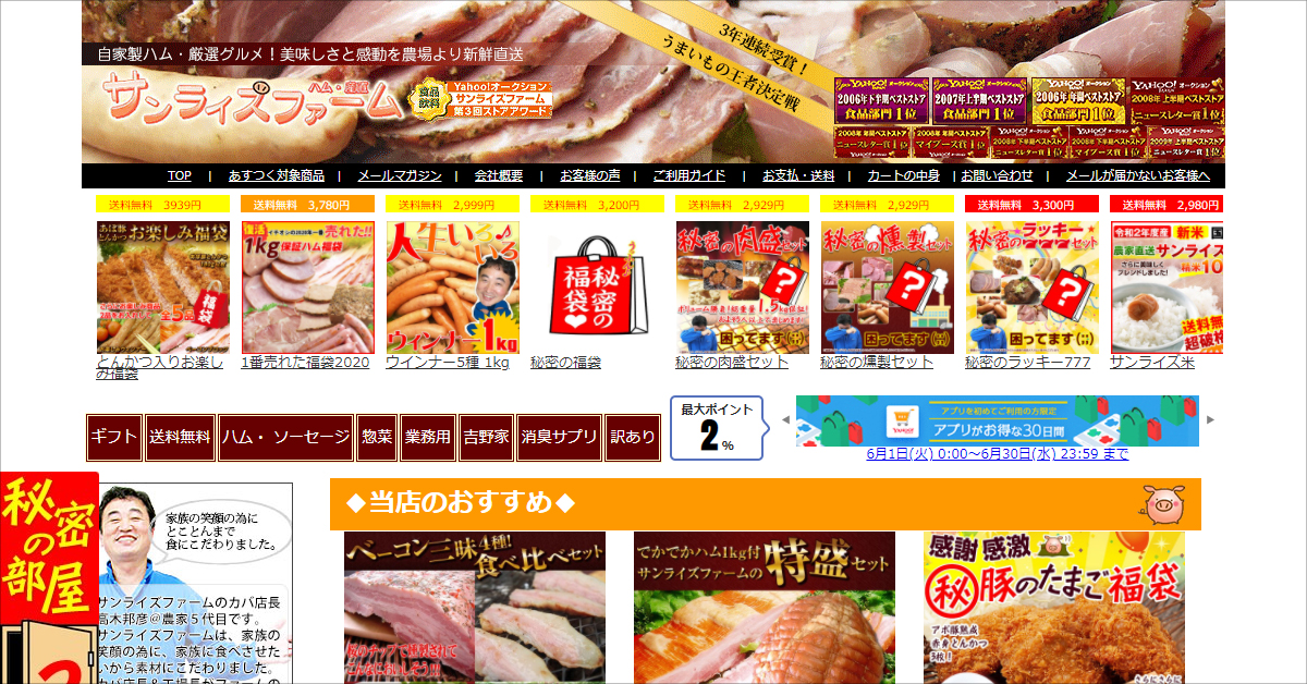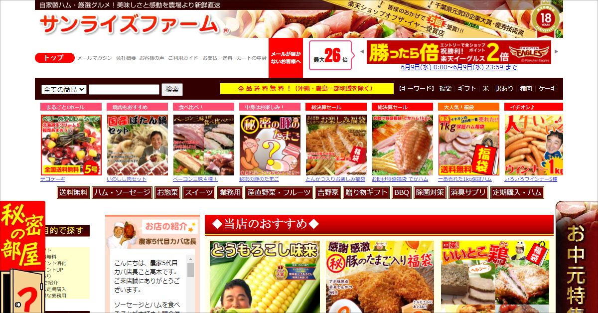 株式会社サンライズファームは、養豚場5代目を継ぐ代表が“おいしいハムやソーセージなどの商品をご家族に届けたい”という思いを叶えるため、製造工場・販売部門を設立するため創業した企業です。「家族の笑顔の為に」という企業理念のもと、20年前には食品卸販売のみならずBtoC通信販売も展開しています。