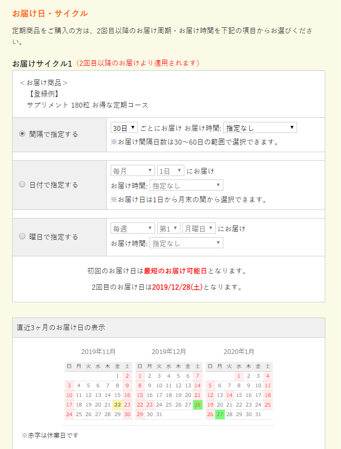 商品やお客様によって様々なお届けの間隔が発生しても様々なお届け周期に柔軟に対応する事ができます!