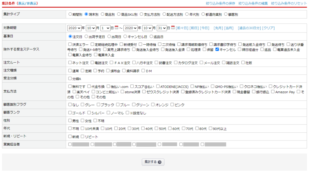 | 除外する受注ステータス | 集計から除外する受注ステータスを選択(複数選択可) |