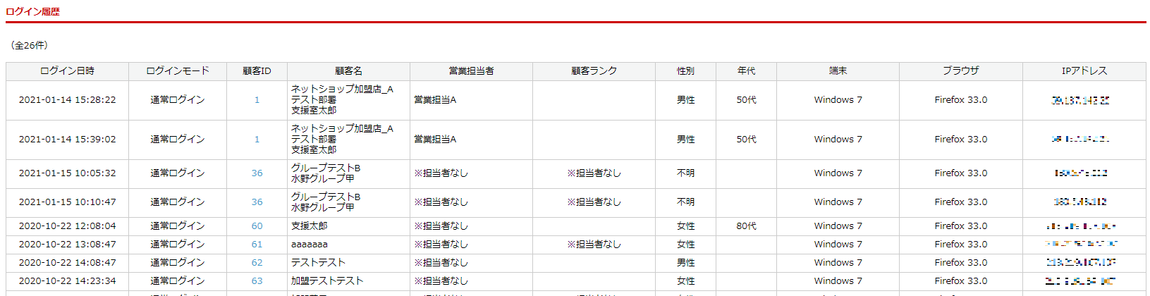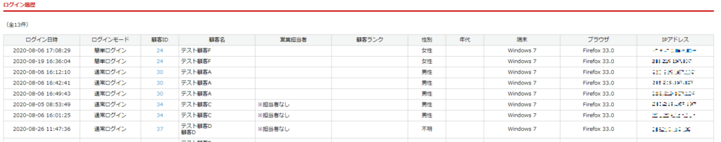 ログイン日時 ログインされた年月日 年-月-日 hh:mm:ss