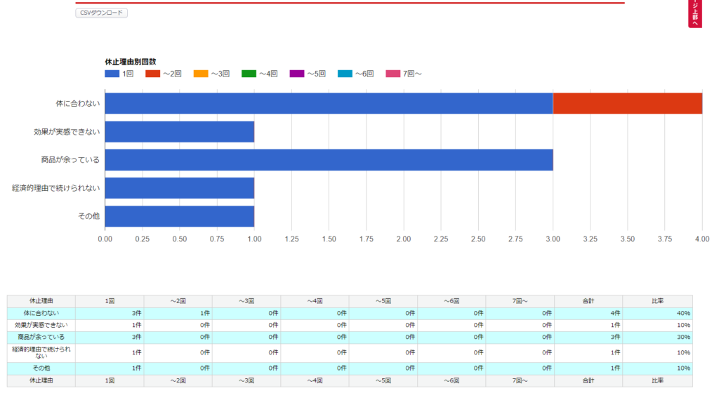 集計条件で設定した期間に一時休止、休止とした際の「休止理由」を集計できる機能です。