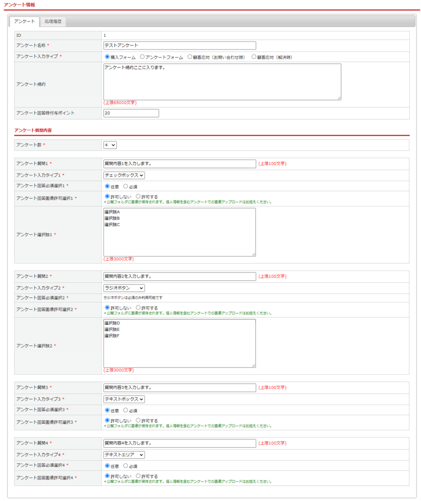| アンケート回答時付与ポイント | アンケート回答時に付加されるポイントを入力 |