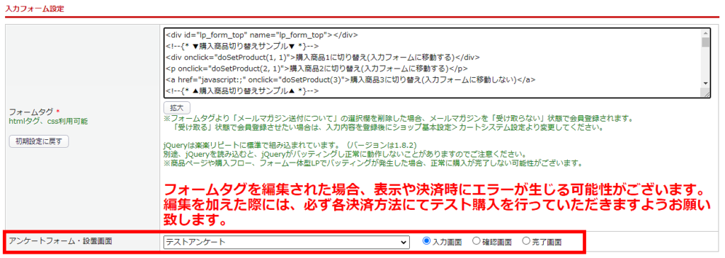 フォーム一体型LPなどに設置するアンケートの設定です。