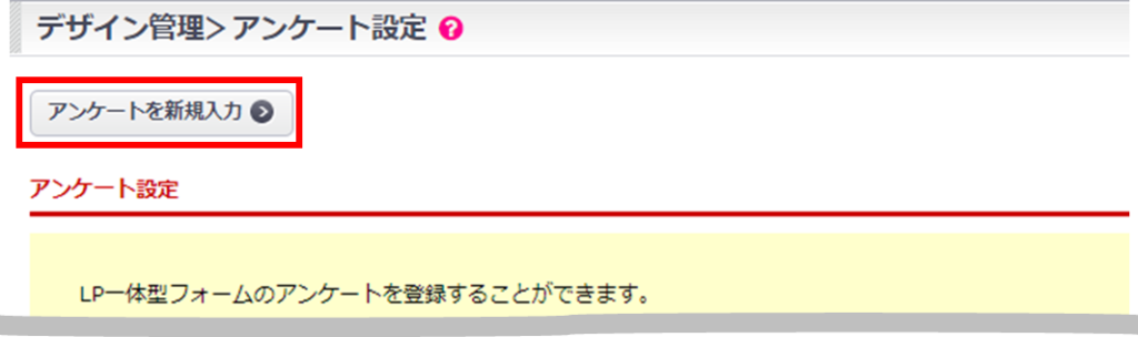 画面左上の【アンケートを新規入力】ボタンを押下すると、設定画面へ進みます。