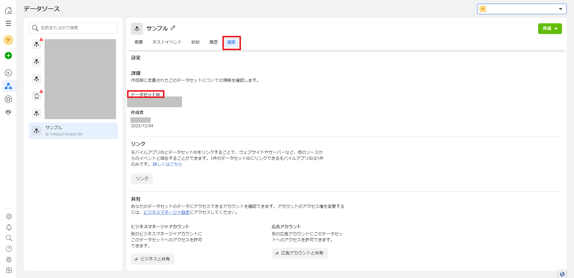 作成したデータソースの[設定]タブにあるデータセットIDを入力します。