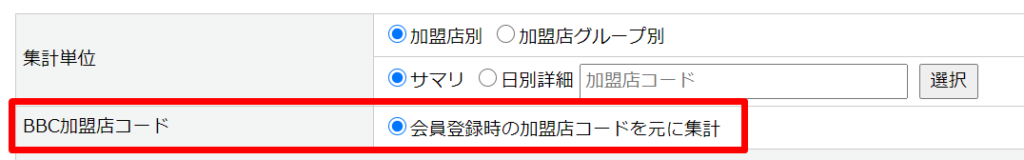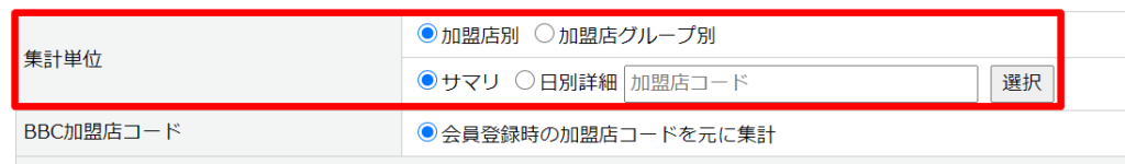 集計単位は「加盟店別」「加盟店グループ別」を選択することができます。