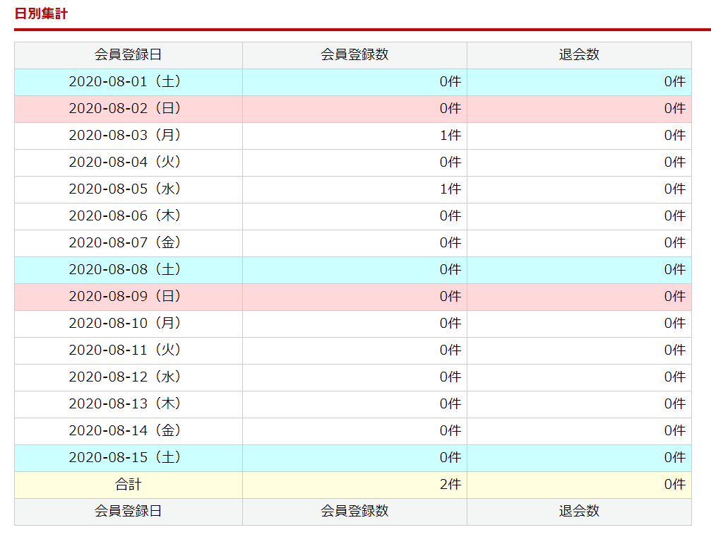 - 「サマリ」:集計条件に則った会員登録別集計が表示されます。
