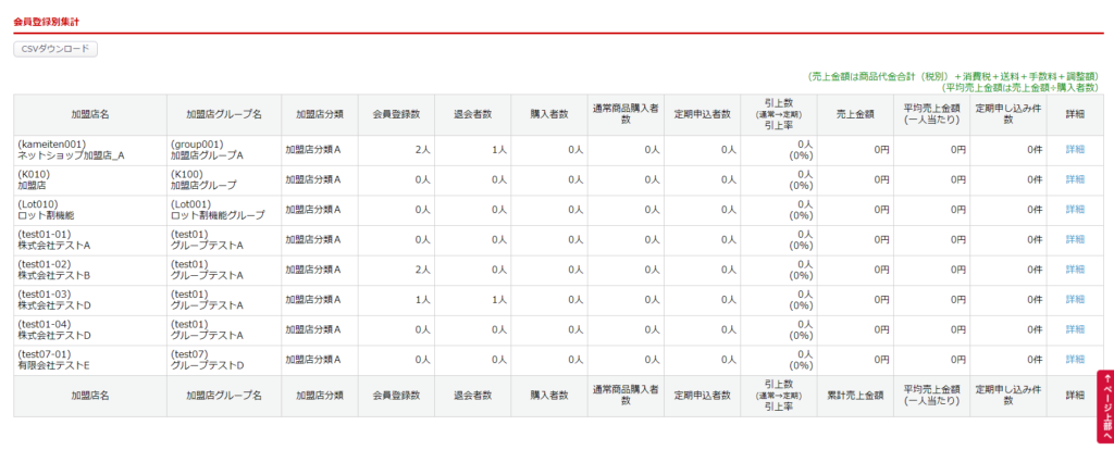 加盟店別・または加盟店グループ別での会員登録について集計を行います。