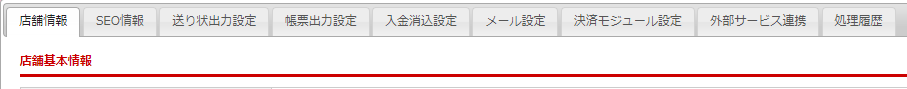 | <店舗情報> | 店舗や運営会社の基本情報のほか、 注文・お問い合わせなどで使用するメールアドレスを設定します |
