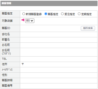 顧客指定:新規顧客登録