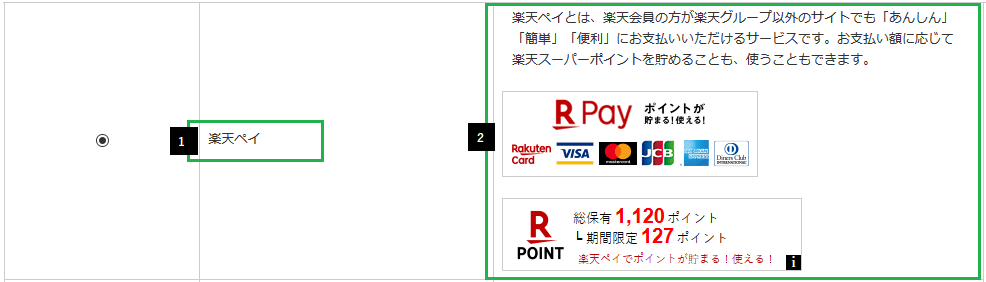 楽天会員が楽天以外のECサイトにおいて、 楽天IDとパスワードだけで簡単にオンライン決済ができるサービスです。 楽天IDに登録しているクレジットカード情報を利用して簡単に決済が行える だけでなく、決済時には「楽天スーパーポイント」の獲得および利用が可能です。*