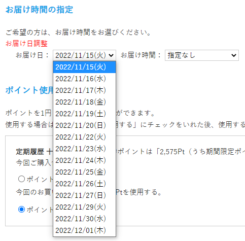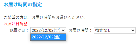 • お届け日プルダウン開始日=最短お届け日です。(※お届け日計算によって算出されます)