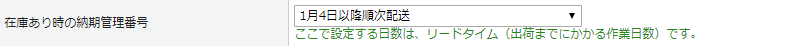 出荷までにかかる作業日数の設定が可能です。