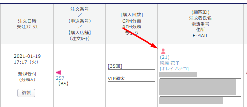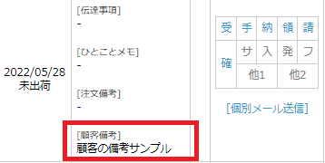 ※フラグが付いた顧客から注文があると受注一覧にてフラグが表示されます。