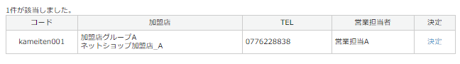 【選択】ボタンから加盟店選択画面にて、登録済の加盟店を選択・紐付けます。