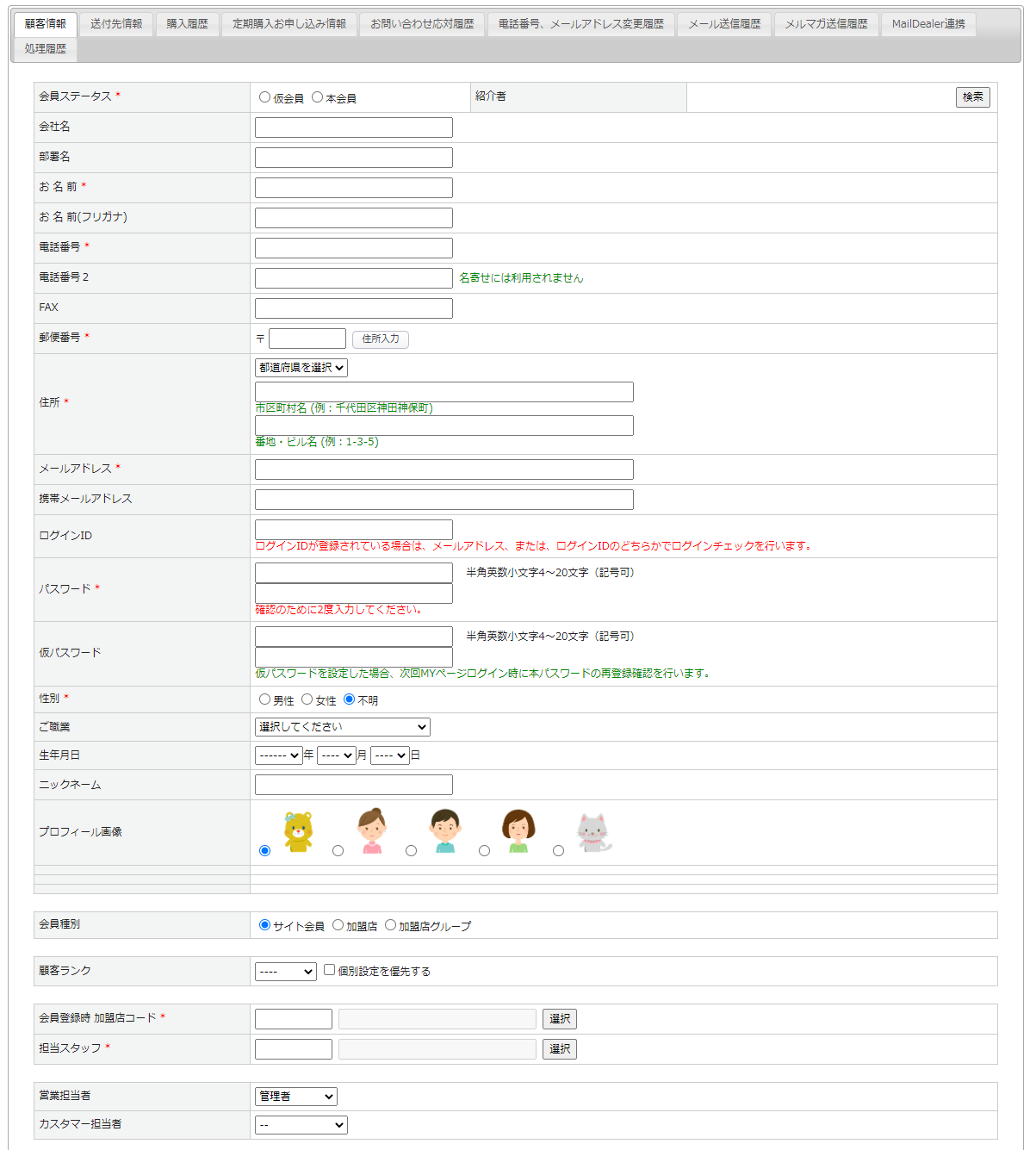 カスタマー担当者 この会員のカスタマー担当者を登録します。