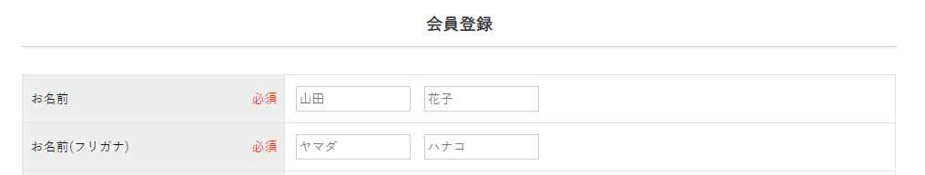 ※デフォルトではお名前入力欄は1つで姓と名の間にスペースをいれて入力する仕様です。