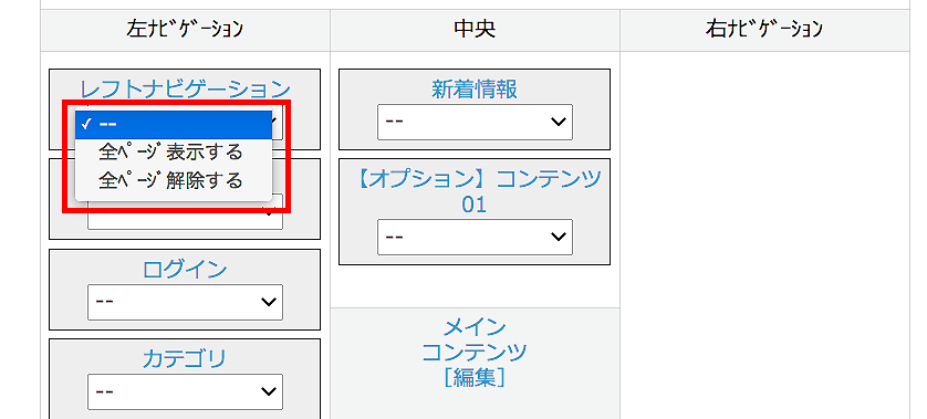 ■レフトナビゲーションの全ページ表示・全ページ解除の例