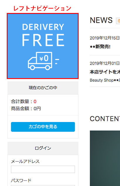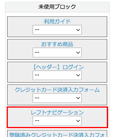 レフトナビゲーションは未使用ブロック内へ移動されました。
