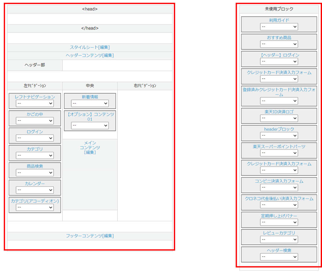 各ページごとの構成要素(ブロック)の変更・移動が設定できます。