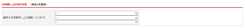 LPページに適用する定期押し上げ施策(※オプション機能)について設定します。3つまで設定する事ができます。