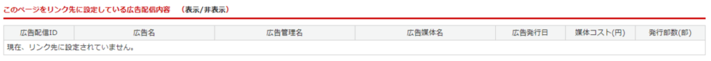 広告管理にてリンク先として当該LPページを設定している場合、設定状況が表示されます。