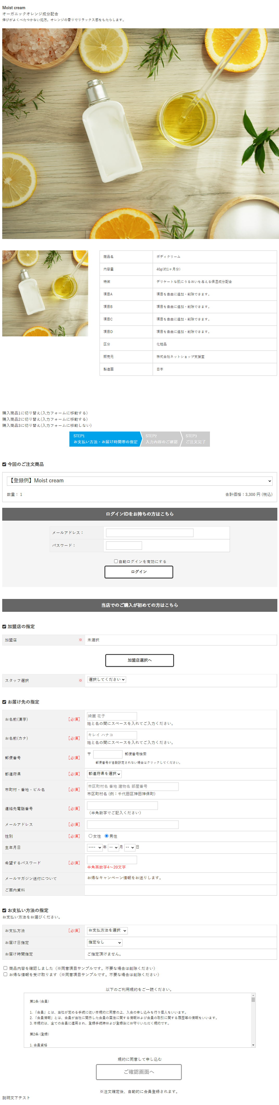 | 説明文下 | 【ご確認画面へ】ボタン下部に表示させるコンテンツを登録 (文字数制限:65000文字) |