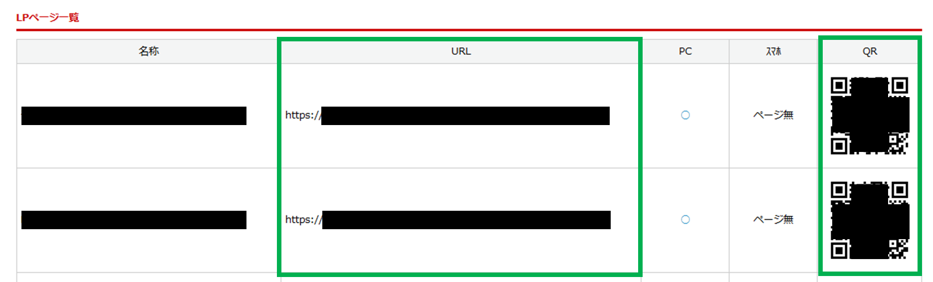 各LP名称の横に表示されているURL、あるいはQRコードを活用ください。