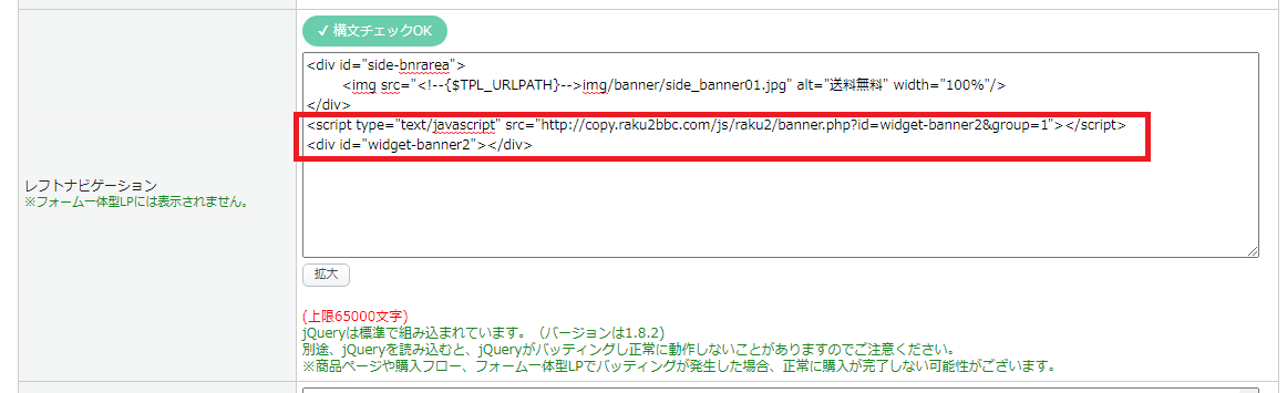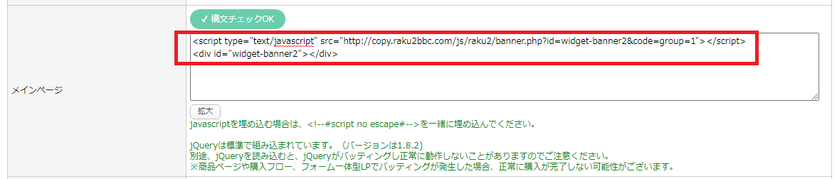 <script type="text/javascript" src="http://copy.raku2bbc.com/js/raku2/banner.php?id=widget-banner1&code=bnr_sample"></script>