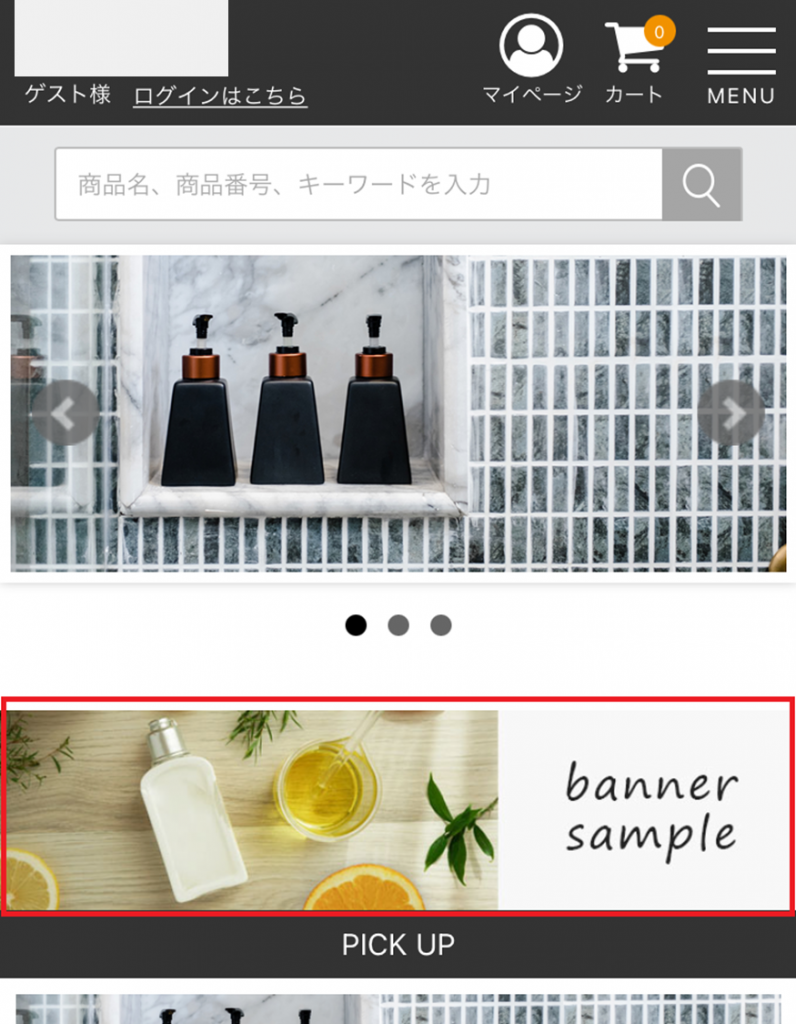 「遷移先URL」が設定されたバナー画像が表示されます。