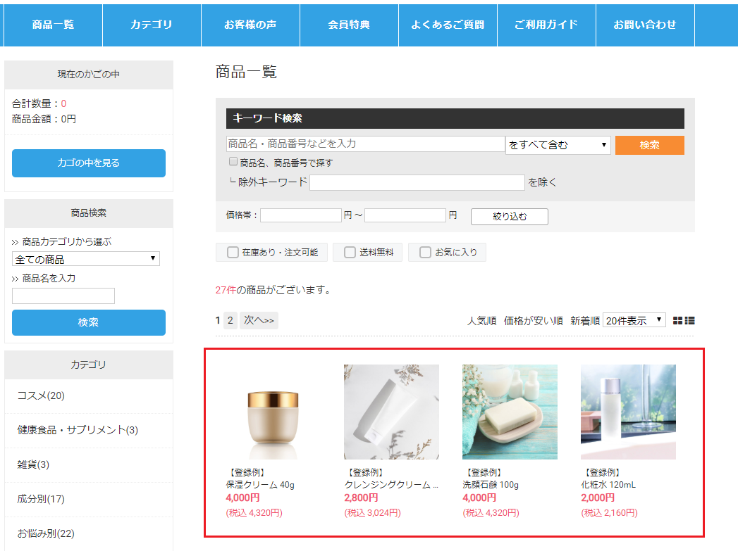 商品一覧ページでは、デフォルトで4列表示となっています。